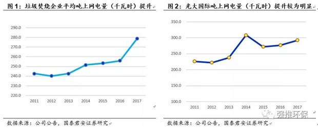 摘要:我們整理數(shù)據(jù)發(fā)現(xiàn),近年來垃圾焚燒企業(yè)噸垃圾上網(wǎng)電量出現(xiàn)較明顯的提升。1)垃圾焚燒龍頭公司的噸垃圾上網(wǎng)電量均值在2011-2017七年間提升36千瓦時。按照全年上網(wǎng)電量/年入廠垃圾量作為計算指標(biāo),2017年龍頭公司平均噸上網(wǎng)電量均值為279千瓦時,較2011年時提升了15%,增加了36千瓦時。2...