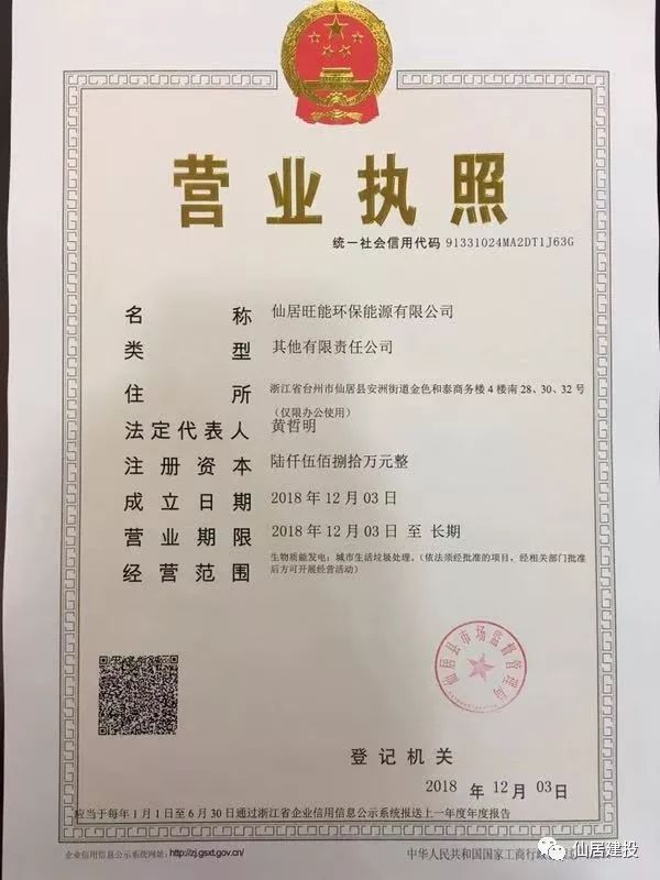 2018年12 月 3日,仙居縣市場監(jiān)督管理局頒發(fā)營業(yè)執(zhí)照。仙居旺能環(huán)保能源有限公司宣告成立?。。崿F(xiàn)了國企借力上市公司,創(chuàng)新發(fā)展、合作共贏,助力國資國企改革取得新成果。項目背景:仙居縣生活垃圾焚燒發(fā)電PPP項目由仙居縣人民政府授權(quán)仙居縣城市建設(shè)發(fā)展集團有限公司作為政府方出資,與社會資本浙江旺能環(huán)保...