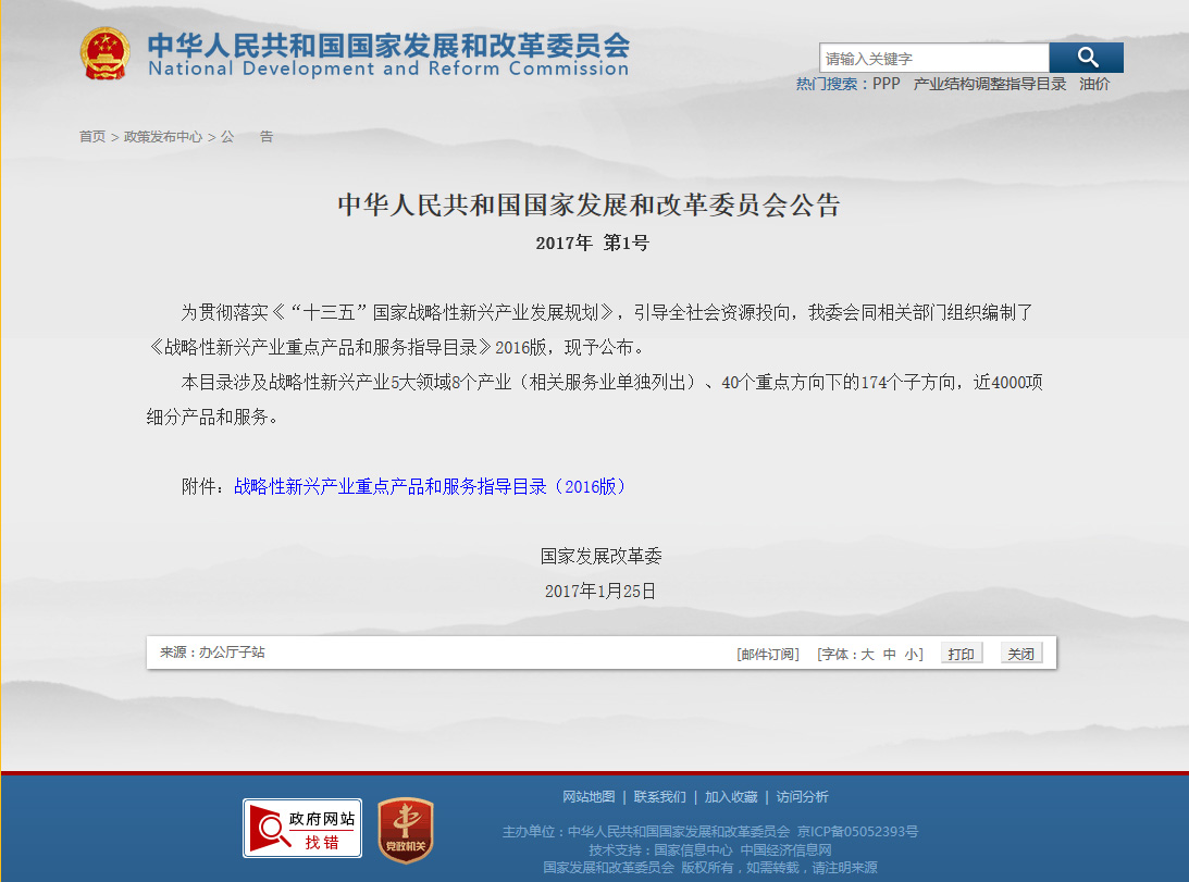 戰(zhàn)略性新興產(chǎn)業(yè)重點(diǎn)產(chǎn)品和服務(wù)指導(dǎo)目錄(2016版)(公告2017年第1號)