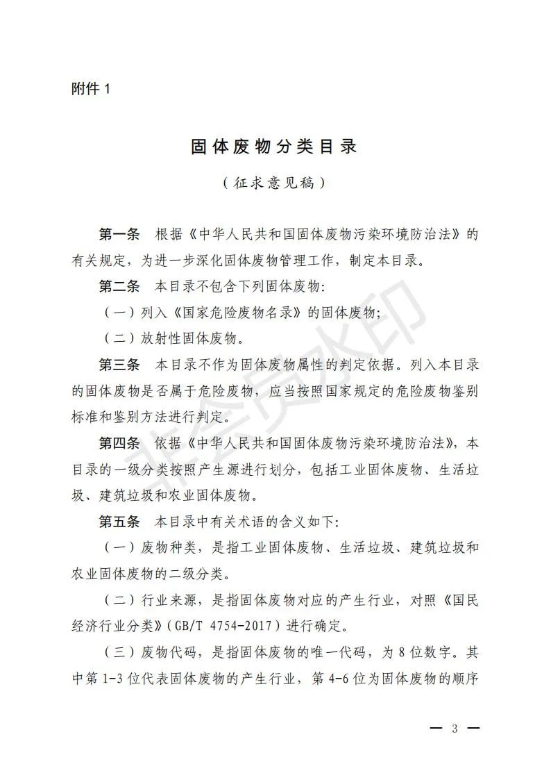 文章導(dǎo)讀為貫徹落實(shí)《中華人民共和國(guó)固體廢物污染環(huán)境防治法》,更好支撐固體廢物的規(guī)范化、精細(xì)化、信息化管理,生態(tài)環(huán)境部組織編制了《固體廢物分類目錄(征求意見稿)》。關(guān)于征求《固體廢物分類目錄(征求意見稿)》意見的函為貫徹落實(shí)《中華人民共和國(guó)固體廢物污染環(huán)境防治法》,更好支撐固體廢物的規(guī)范化、精細(xì)化、信...