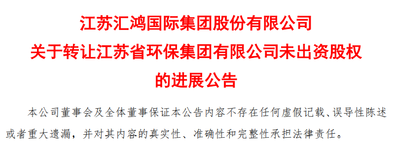 近日,匯鴻集團(tuán)發(fā)布公告稱,同意匯鴻集團(tuán)以非公開協(xié)議方式轉(zhuǎn)讓持有的江蘇省環(huán)保集團(tuán)有限公司(以下簡稱“省環(huán)保集團(tuán)”)30.62%的公司股權(quán),即對應(yīng)的公司未繳納的15.6億元注冊資本出資額。其中,5億元出資份額對應(yīng)的9.81%股權(quán)轉(zhuǎn)讓給江蘇省國金資本運(yùn)營集團(tuán)有限公司(以下簡稱 “國金集團(tuán)”或“受讓方”);...