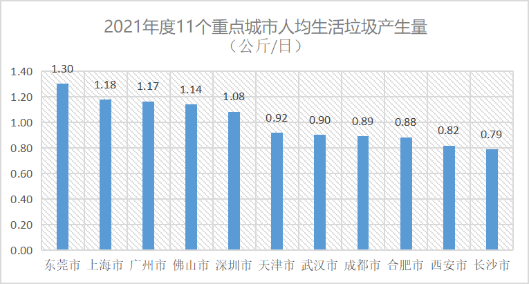 近日,11個重點(diǎn)城市《2021年固體廢物污染環(huán)境防治信息公告》陸續(xù)發(fā)布。數(shù)據(jù)統(tǒng)計顯示,2021年度11個重點(diǎn)城市生活垃圾產(chǎn)生總量達(dá)到6064.69萬噸,人均每天生活垃圾產(chǎn)生量突破1公斤(1.0073公斤/人/日)。2021年度,11個重點(diǎn)城市中,人均生活垃圾產(chǎn)生量最高的城市是東莞市,人均每日產(chǎn)生生活...