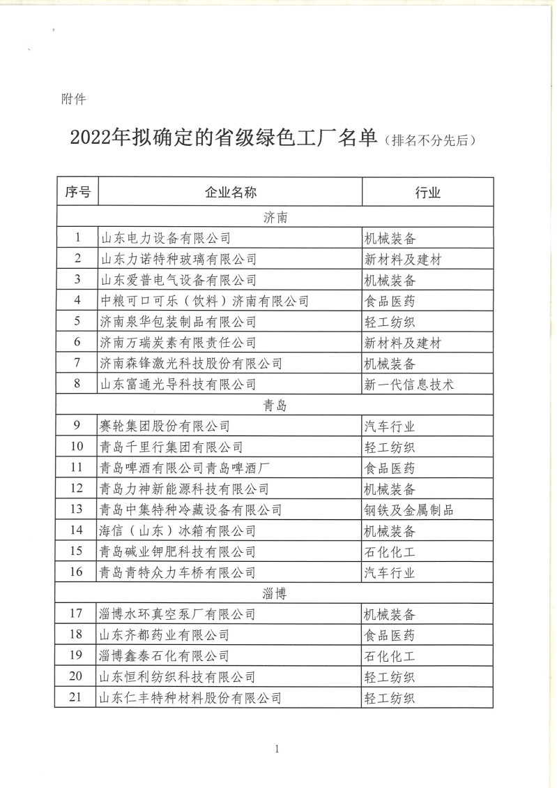 山東省工業(yè)和信息化廳關于2022年省級綠色工廠名單的公示 為加快推進我省綠色制造體系建設,省工業(yè)和信息化廳組織開展了2022年省級綠色工廠推薦工作。經企業(yè)申報、各市推薦、專家評審論證等程序,擬確定117家企業(yè)為省級綠色工廠,現(xiàn)將企業(yè)名單(見附件)予以公示。 公示期為:2022年6月7日—...