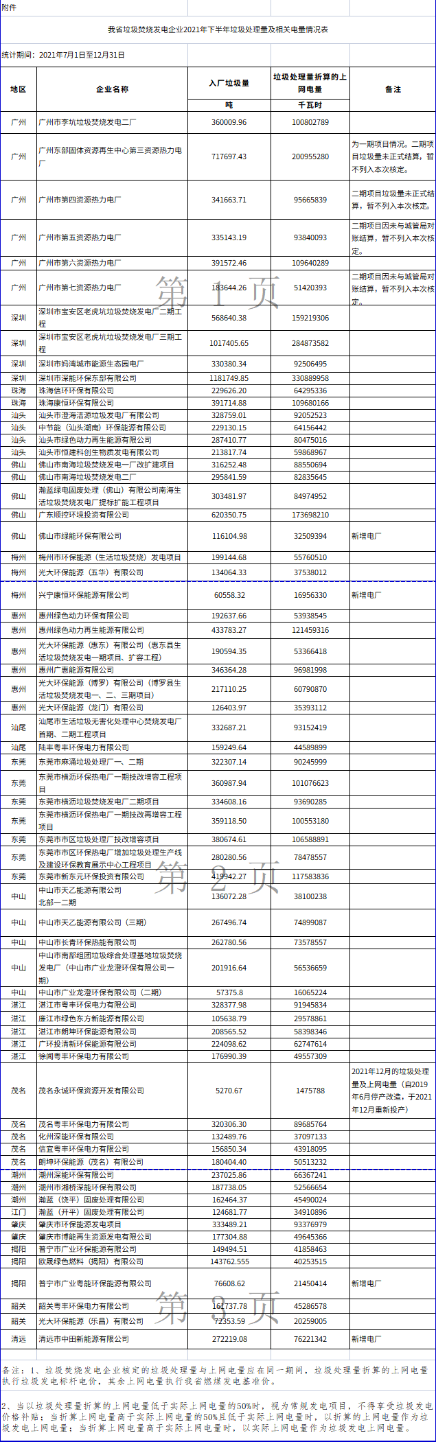 廣東省發(fā)展改革委關(guān)于公布有關(guān)垃圾焚燒發(fā)電企業(yè)2021年下半年垃圾處理量及相關(guān)電量的通知 粵發(fā)改價格函〔2022〕1180號各地級以上市發(fā)展改革局(委),廣東電網(wǎng)公司,深圳供電局,相關(guān)垃圾焚燒發(fā)電企業(yè): 一、根據(jù)原省物價局《轉(zhuǎn)發(fā)國家發(fā)展改革委關(guān)于完善垃圾焚燒發(fā)電價格政策的通知》(粵價〔2012〕170...