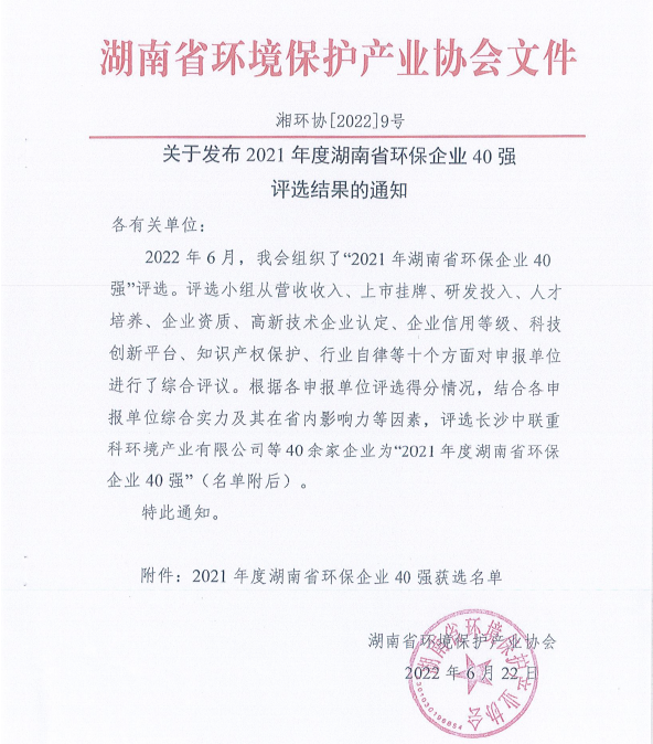 2022年6月24日,中鐵環(huán)境被湖南省環(huán)境保護產(chǎn)業(yè)協(xié)會評選為2021年度湖南省環(huán)保企業(yè)40強。 中鐵環(huán)境自2018年成立以來,主營業(yè)務(wù)持續(xù)聚焦污水處理、固廢處置領(lǐng)域,并大力發(fā)展生態(tài)修復(fù)、綠色建造等領(lǐng)域業(yè)務(wù),突出環(huán)保裝備和材料的創(chuàng)新研發(fā),采用“裝備+服務(wù)”管家新模式,為客服提供...