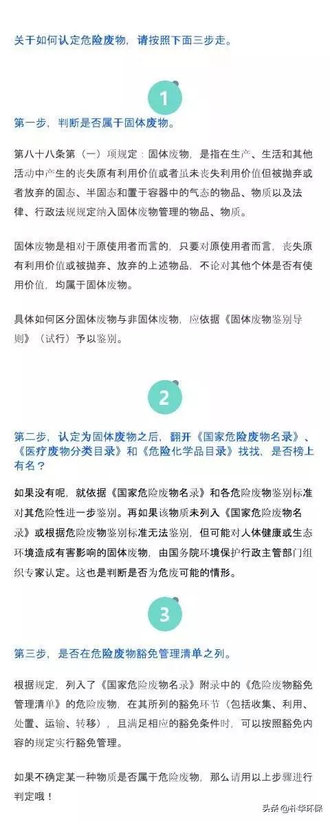 危險廢物的定義:根據《中華人民共和國固體廢物污染環(huán)境防治法》和《危險廢物經營許可證管理辦法》,危險廢物是指列入《國家危險廢物名錄》或者根據國家規(guī)定的危險廢物鑒別標準和鑒別方法認定的具有危險特性的固體廢物。該定義包括兩個方面的含義,一是危險廢物屬于固體廢物的一部分(換言之,某種物質如果不屬于固體廢物,...