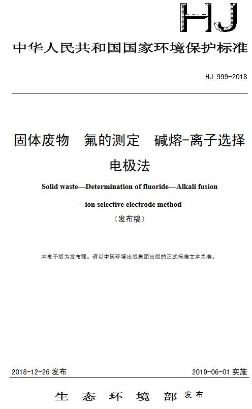 日前生態(tài)環(huán)境部發(fā)布了國家環(huán)境保護(hù)標(biāo)準(zhǔn):《固體廢物氟的測定 堿熔-離子選擇電極法》(HJ 999-2018),具體內(nèi)容如下:固體廢物 氟的測定 堿熔-離子選擇電極法Solid waste—Determination of fluoride—Alkali fusion—ion ive electrode...