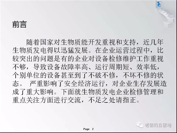 隨著國家對生物質(zhì)能開發(fā)總是和支持,近幾年生物質(zhì)發(fā)電得以迅猛發(fā)展。在企業(yè)運營過程中,比較突出的問題是有的企業(yè)對設(shè)備檢修維護工作重視不夠,導(dǎo)致設(shè)備故障率高、運行周期短、效率低,個別單位的設(shè)備甚至到了不破不修,不壞不修的狀態(tài)、嚴重影響了安全經(jīng)濟運行,對企業(yè)生存發(fā)展造成了重大影響。下面就生物質(zhì)發(fā)電企業(yè)檢修管...