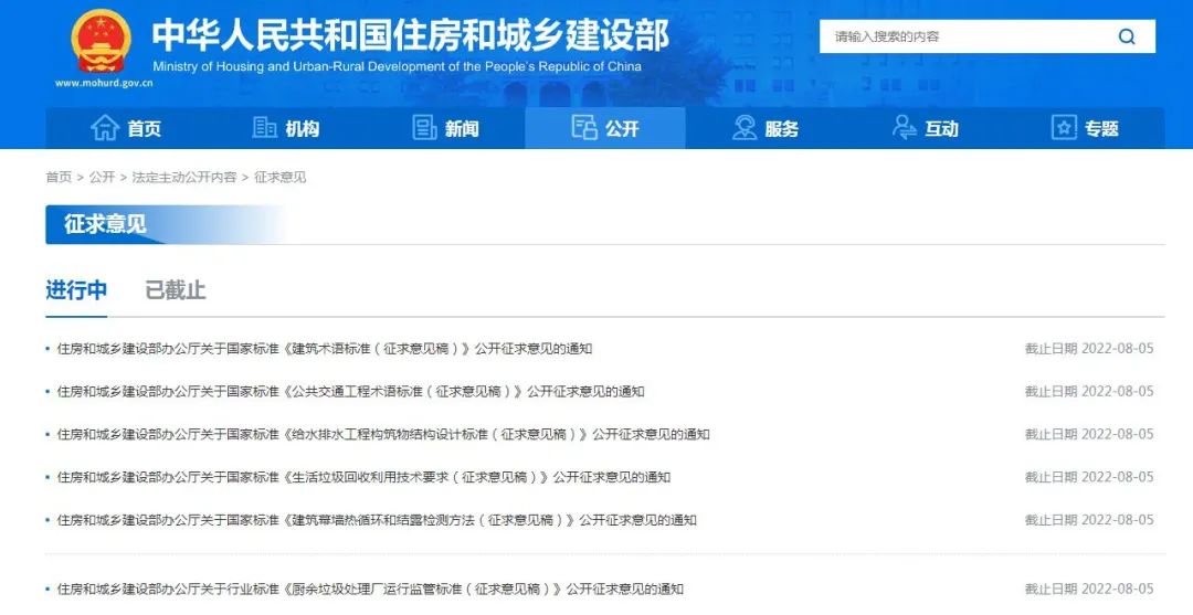 近日,住房和城鄉(xiāng)建設部辦公廳就國家標準《建筑術語標準》《公共交通工程術語標準》《給水排水工程構筑物結構設計標準》《生活垃圾回收利用技術要求》《建筑幕墻熱循環(huán)和結露檢測方法》《廚余垃圾處理廠運行監(jiān)管標準》公開征求意見,意見反饋截止時間為2022年8月5日。點擊下方藍色標題了解標準詳情?!督ㄖg語標準》...