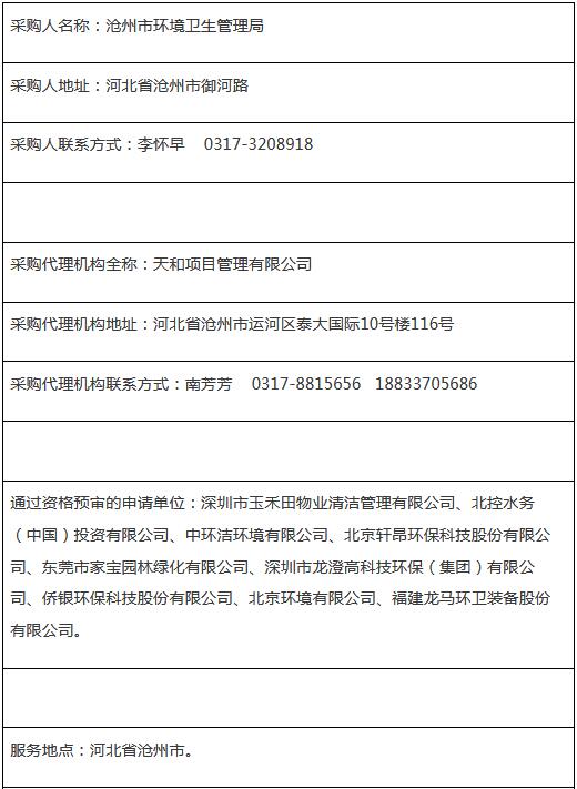 滄州市環(huán)境衛(wèi)生管理局環(huán)衛(wèi)市場(chǎng)化項(xiàng)目中標(biāo)公告