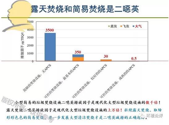 日本、英國的研究表明,膳食攝入是人體二噁英暴露的主要途徑,占總攝入量的98%以上,呼吸攝入不足1%,因此從二惡英風(fēng)險(xiǎn)控制角度出發(fā),垃圾焚燒廠可建在城市區(qū)域,應(yīng)盡可能遠(yuǎn)離農(nóng)牧水產(chǎn)區(qū)。近期南京大學(xué)的研究表明,垃圾焚燒二噁英致癌風(fēng)險(xiǎn)較可接受水平低1個數(shù)量級。由于簡易焚燒、露天焚燒的二噁英排放因子是現(xiàn)代化垃圾焚燒的數(shù)千倍至上萬倍,我國在普遍推行垃圾分類制度、完善垃圾分類處理系統(tǒng)過程中,應(yīng)堅(jiān)決杜絕露天焚燒、取締簡易焚燒,堅(jiān)定不移地發(fā)展現(xiàn)代化大型清潔垃圾焚燒。