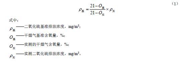 5.1.3 天然氣凈化廠硫磺回收裝置尾氣排氣筒的實測二氧化硫排放濃度,須換算成基準(zhǔn)含氧量為3%的大氣污染物基準(zhǔn)排放濃度,并與排放限值比較判定排放是否達(dá)標(biāo)。大氣污染物基準(zhǔn)排放濃度按公式(1)進(jìn)行計算。