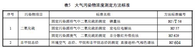 6.3.2 大氣污染物濃度的測定采用表5所列的方法標(biāo)準(zhǔn)。