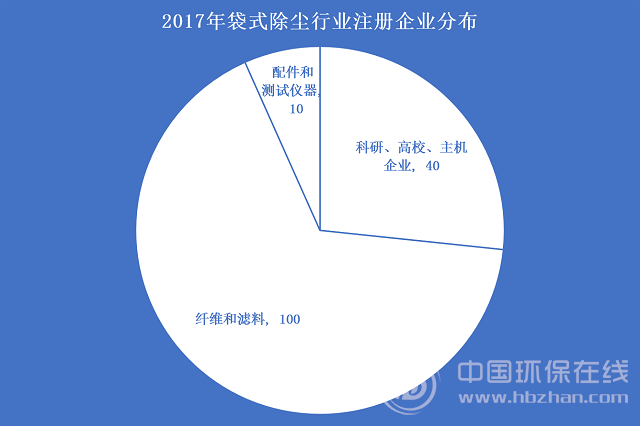 到了2017年,調(diào)查顯示,從事袋式除塵行業(yè)的注冊(cè)的企業(yè)150余家,分布在全國(guó)26個(gè)省(直轄市),其中科研、高校和主機(jī)企業(yè)40余家,纖維和濾料100余家,配件和測(cè)試儀器共10余家。