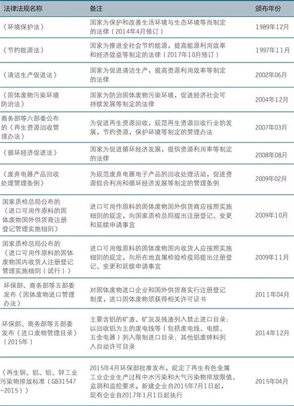 再生鋁行業(yè)屬于資源再生和循環(huán)經濟的范疇,行業(yè)的良好發(fā)展具有重大的經 濟、社會和環(huán)境意義,是國家大力發(fā)展的行業(yè)之一。近幾年來,我國相繼出臺了大力鼓勵和支持循環(huán)經濟、再生金屬行業(yè)發(fā)展的眾多政策性文件。