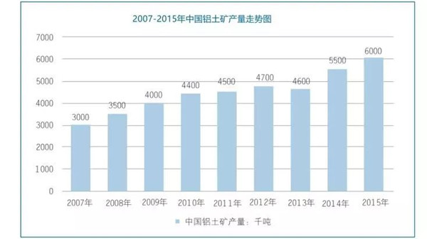 2015年中國鋁土礦產量為6000萬噸,占同期全球總產量的21.9%。按照同期中國鋁土礦資源儲量,中國鋁土礦靜態(tài)可采年限僅為14年,遠低于全球120年的平均水平,加強資源的合理開發(fā)利用是我國鋁土礦產業(yè)乃至整個鋁業(yè)所面臨的重要問題。