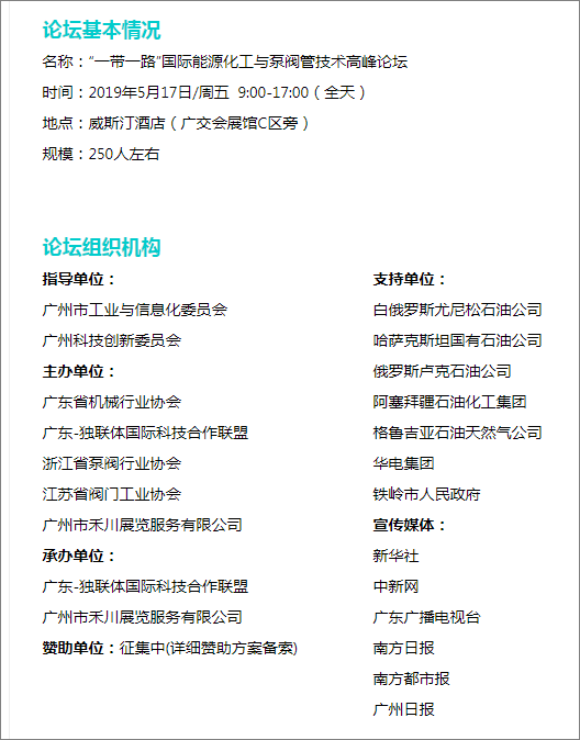 值得一提的是,為進(jìn)一步推動(dòng)我國(guó)能源化工與泵閥管技術(shù)制造企業(yè)與“一帶一路”沿線國(guó)家在石油化工、管道設(shè)施等企業(yè)間互聯(lián)溝通和貿(mào)易合作,為我國(guó)企業(yè)搭建B to C交流平臺(tái),同時(shí)深入實(shí)施國(guó)際科技創(chuàng)新驅(qū)動(dòng)發(fā)展戰(zhàn)略,匯聚“一帶一路”流體技術(shù)科技創(chuàng)新資源,加快成果轉(zhuǎn)化和產(chǎn)業(yè)創(chuàng)新升級(jí),主辦方將舉辦“一帶一路”國(guó)際能源化工與泵閥管技術(shù)高峰論壇。