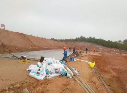1、正在澆筑廠區(qū)物流通道道路水泥路面;