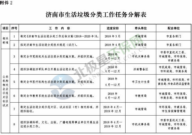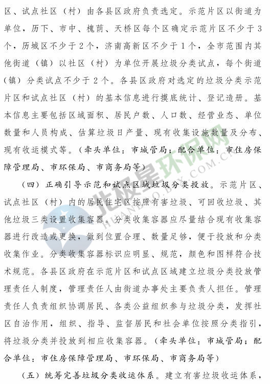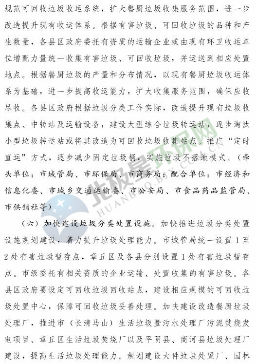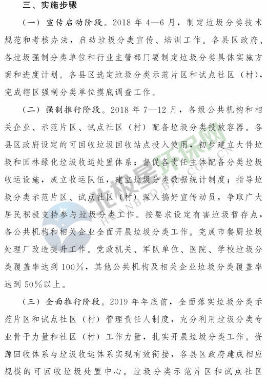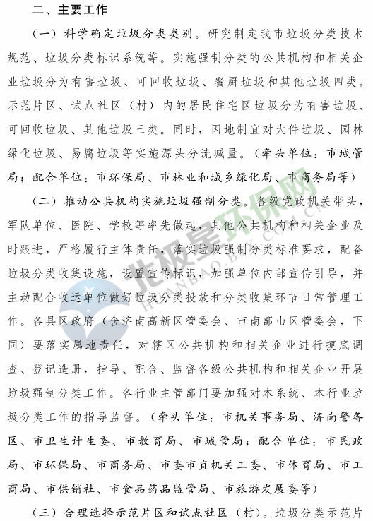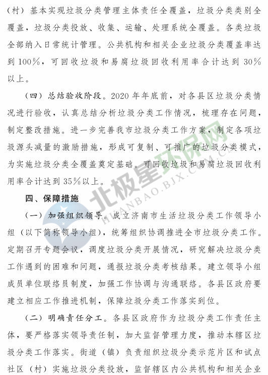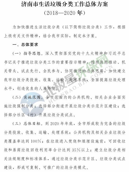 《濟南市生活垃圾分類工作總體方案(2018—2020年)》已經(jīng)印發(fā),《方案》提出,到 2020 年年底,全市形成較為完備的垃圾分類投放、收集、運輸、處理系統(tǒng);公共機構(gòu)及相關企業(yè)垃圾分類覆蓋率達到 100% ;在垃圾進入焚燒和填埋設施前,可回收垃圾和易腐垃圾回收利用率合計達到 35% 以上;建立垃圾分類相關法規(guī)制度和標準體系,通過垃圾分類示范片區(qū)、垃圾分類試點建設,形成可復制、可推廣的垃圾分類模式。詳情如下: