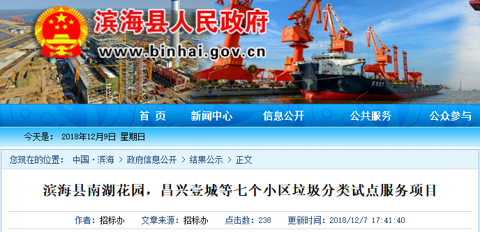 原標(biāo)題:金沙田中標(biāo)106.6萬江蘇濱海縣七個小區(qū)垃圾分類項目