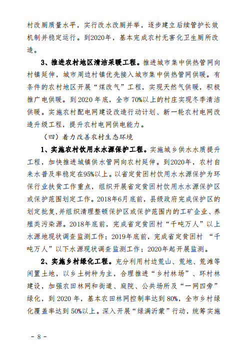 近日,臨沂市人民政府發(fā)布關(guān)于印發(fā)臨沂市打好農(nóng)業(yè)農(nóng)村污染治理攻堅(jiān)戰(zhàn)作戰(zhàn)方案(2018-2020年)的通知,方案要求,到2020年,全市農(nóng)村人居環(huán)境明顯改善,基本實(shí)現(xiàn)村莊規(guī)劃編制、生活垃圾收運(yùn)處置、無(wú)害化衛(wèi)生廁所改造全覆蓋,生活污水處理率大幅提高,村容村貌明顯改觀。詳情如下: