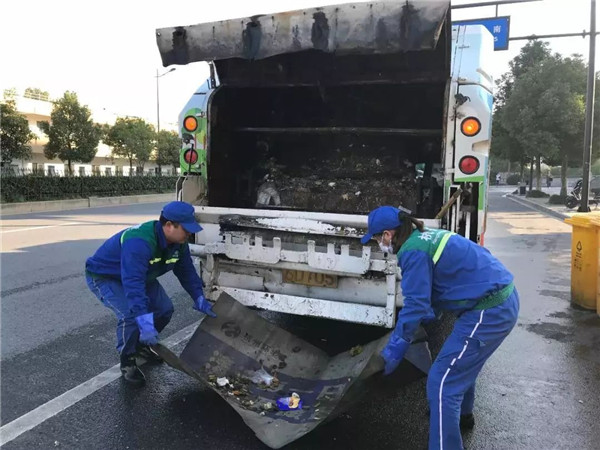 夫妻倆一天要跑60個(gè)點(diǎn),清運(yùn)600多桶垃圾。每到一集運(yùn)點(diǎn),車(chē)輛開(kāi)蓋、地面鋪毯,這樣的流程龔磊夫妻每天要重復(fù)120次,掛桶、傾倒、歸置空桶,一天要重復(fù)180次。夫妻倆配合默契,動(dòng)作干凈利落,垃圾桶內(nèi)滿(mǎn)滿(mǎn)的垃圾瞬間轉(zhuǎn)移到了清潔直運(yùn)車(chē)的“肚子里”。