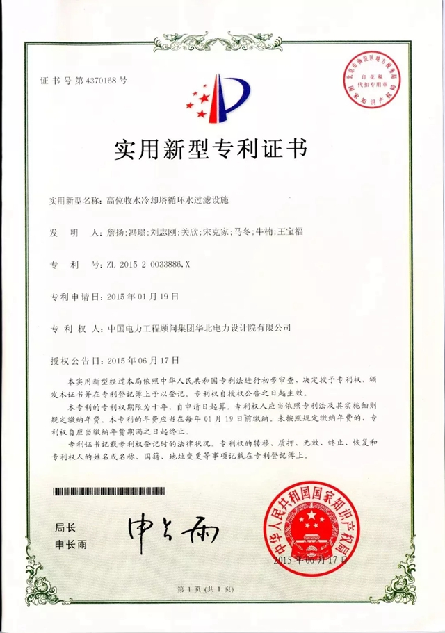 專家組在評審意見中高度評價了華北院取得的成果,一致認(rèn)為:“該項(xiàng)目技術(shù)成果達(dá)到國內(nèi)領(lǐng)先水平,高位收水冷卻塔循環(huán)水過濾設(shè)施達(dá)到國際先進(jìn)水平”“建議盡快推廣應(yīng)用”。