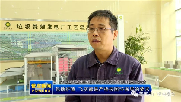 【安順綠色動力再生能源有限公司生產(chǎn)副總經(jīng)理董法波】整個生產(chǎn)煙氣處理,包括爐渣、飛灰,都是嚴格按照環(huán)保局的要求、環(huán)保指標的監(jiān)測要求,來規(guī)范去做,實現(xiàn)讓百姓放心,讓政府放心,讓社會放心的這個目的。