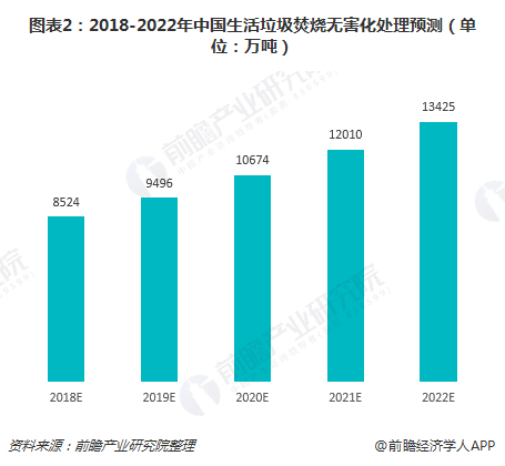 垃圾處理是現代社會人類生活的剛性需求,垃圾是否得到清潔化處理,是現代文明的重要標志。雖然生活垃圾產生量逐年增加,但隨著垃圾焚燒技術的不斷提升,生活垃圾的無害化處理率也在逐年提高。2018年,城市生活垃圾焚燒無害化處理量預計達8524萬噸,到2022年將超過13000萬噸。