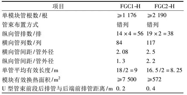 為了便于煙氣冷卻器的安裝,氟塑料換熱器采用模塊化設(shè)計,其結(jié)構(gòu)參數(shù)見表3。