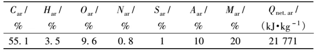 表1 煤質(zhì)分析