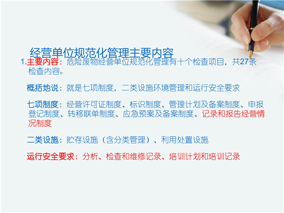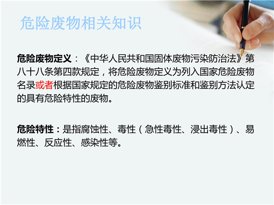 2018年石家莊市固體廢物管理培訓(xùn)會議課件日前公布,其中,“危險廢物法律法規(guī)和標(biāo)準(zhǔn)規(guī)范”共108張PPT,從固體廢物相關(guān)知識、我國危險廢物的主要法律制度、危險廢物規(guī)范化管理指標(biāo)體系、2018年度危險廢物規(guī)范化管理督查考核四方面進(jìn)行了詳細(xì)闡述。詳情如下: