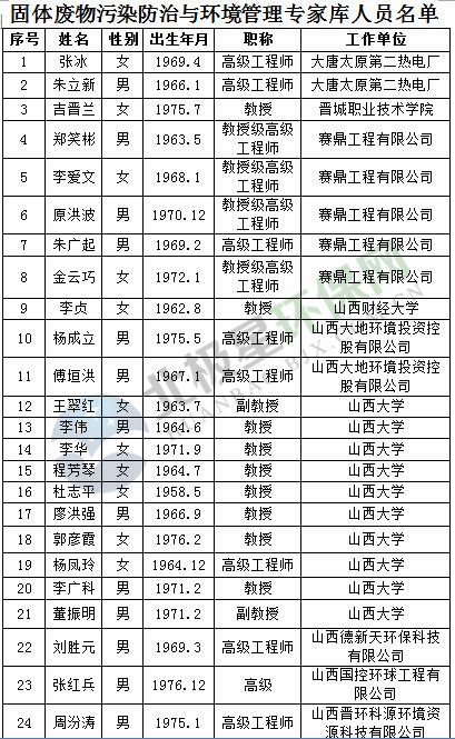 關(guān)于對山西省土壤和固體廢物污染防治與環(huán)境管理專家?guī)烊霂鞂<业墓?/strong>