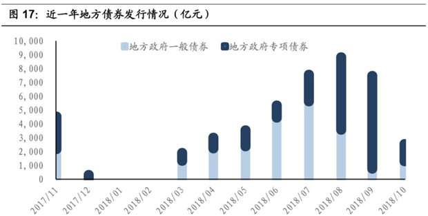 10月份基建投資(不含電力)增速為6.7%,較前3個(gè)月的-1.8%、-4.3%和-1.8%大幅提升。從基礎(chǔ)設(shè)施投資增速來(lái)看,地方債發(fā)行的積極效應(yīng)已經(jīng)開(kāi)始顯現(xiàn)。地方政府專(zhuān)項(xiàng)債為基建補(bǔ)短板提供一定資金支持。今年下半年大量發(fā)行的地方債券,所產(chǎn)生的積極效益將在明年上半年得到集中體現(xiàn)??紤]到當(dāng)前的經(jīng)濟(jì)形勢(shì)與財(cái)政政策,明年地方專(zhuān)項(xiàng)的債發(fā)行規(guī)模有望進(jìn)一步擴(kuò)大。