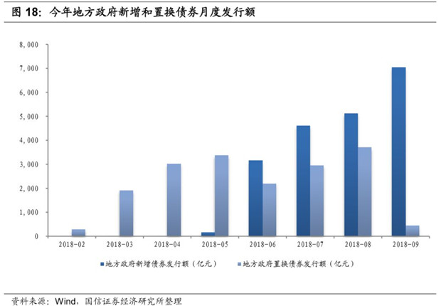 由于大多數(shù)地區(qū)于 5 月才通過(guò)本年預(yù)算調(diào)整方案并最終確定一般債和專(zhuān)項(xiàng)債的限額,因此上半年發(fā)行的地方政府債券主要是置換債券,新增債券從5月份才開(kāi)始發(fā)行。結(jié)合專(zhuān)項(xiàng)債券的月度發(fā)行情況,截至到9月底新增專(zhuān)項(xiàng)債券可能已經(jīng)發(fā)行了1.49萬(wàn)億,年度1.35萬(wàn)億的計(jì)劃或可超額完成。