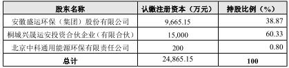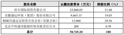 本次世豐國際以自有資金共計(jì) 25,880.05 萬元人民幣,通過增資的方式,獲得標(biāo)的公司 51%的股權(quán),盛運(yùn)環(huán)保持有標(biāo)的公司 19.05%的股權(quán),桐城興晟運(yùn)安投資合伙企業(yè)(有限合伙)持有標(biāo)的公司 29.56%的股權(quán),北京中科通用能源環(huán)保有限責(zé)任公司持有標(biāo)的公司 0.39%。