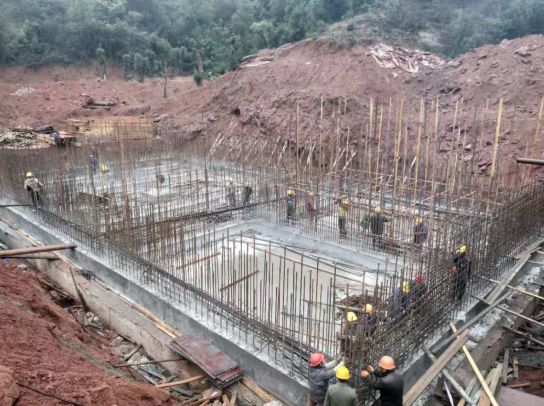 2、滲濾液處理生化綜合池池體鋼筋綁扎完成,模板制安,調(diào)節(jié)池池體澆筑完成;