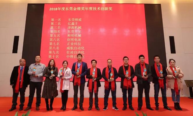 2018年度東莞鋰電業(yè)年度技術創(chuàng)新獎獲獎