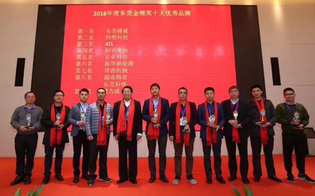 2018年度東莞鋰電業(yè)十大優(yōu)秀品牌獲獎