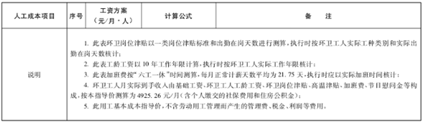 六、執(zhí)行環(huán)衛(wèi)用工基本成本指導(dǎo)價(jià)位
