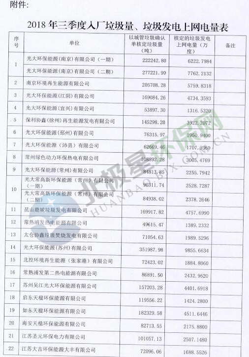 日前,江蘇發(fā)改委發(fā)布關于確定垃圾焚燒發(fā)電企業(yè)2018年第三季度垃圾處理量和上網(wǎng)電量的通知,詳情如下: