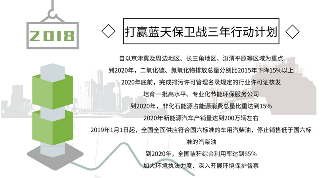 “大氣十條”目標如約完成,鞏固既得成果也是絲毫不能懈怠。緊跟著我國就提出了“藍天保衛(wèi)戰(zhàn)”概念,并且2018年-2020年三年行動計劃正式發(fā)布。