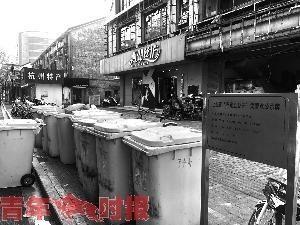 路邊的果殼箱設(shè)置位置調(diào)整,“大肚量”的垃圾桶也不像以前那樣隨處可見了。以前,沿街的商鋪門口都至少有一個(gè)垃圾桶,但記者在東坡路、延安路、平海路、解放路等西湖周邊的道路上轉(zhuǎn)了轉(zhuǎn),發(fā)現(xiàn)都不大有了,基本都進(jìn)巷或入店了。