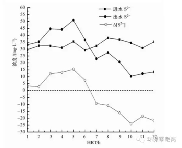 圖 4 UASB反應(yīng)器內(nèi)S2-濃度隨HRT變化情況