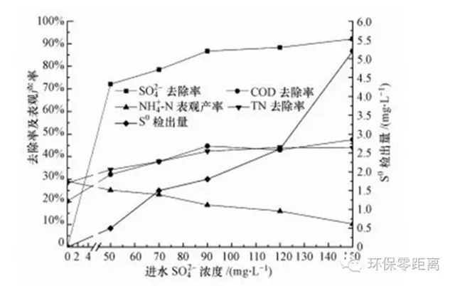 菌種鑒定確定了UASB反應(yīng)器內(nèi)存在硫酸鹽還原、脫硫反硝化和硝化反硝化, 而硫酸鹽還原反應(yīng)脫出的O可能被硝化菌及其它細(xì)菌撲捉參與硝化和有機物降解, 工藝運行中也發(fā)現(xiàn), 隨著進水SO42-含量的波動, UASB反應(yīng)器內(nèi)COD、TN、S2-等指標(biāo)也相應(yīng)存在細(xì)微的變動, 因此, 猜測硫酸鹽還原作用影響著硝化反硝化、脫硫反硝化及COD去除.為了試著驗證這一猜想, 進行了硫酸鹽含量對UASB運行影響實驗.考慮到采用中試裝置研究會存在SO42-含量不易精確控制、藥劑投加量大和研究成本高等問題, 因此, 采用小試研究.