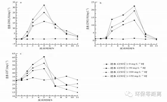 圖 7進水C(SO42-)對UASB反應(yīng)咯呆全內(nèi)NO2--N、NO3--N、S2-指標(biāo)隨反應(yīng)時間變動的影響