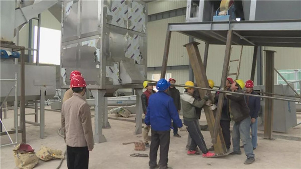 在豐都縣規(guī)?;锬茉垂こ探ㄔO現(xiàn)場,工程土建已全部完成,工人們正在餐廚車間安裝機器設備,而工程厭氧發(fā)酵系統(tǒng)、有機肥生產等設備安裝已經完成。