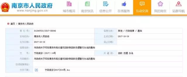 第一條 為鼓勵(lì)居民、企業(yè)參與低價(jià)值可回收物的回收利用,促進(jìn)生活垃圾減量化和資源化處理,依據(jù)《南京市生活垃圾分類管理辦法》等有關(guān)法律、法規(guī)和規(guī)章的規(guī)定,結(jié)合本市實(shí)際,制定本辦法。