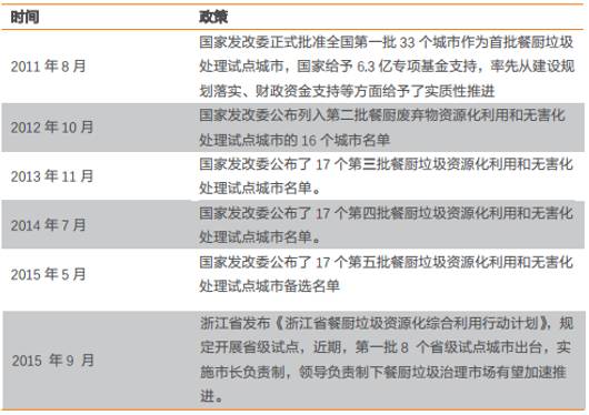 此外, 2015 年 9 月,浙江省發(fā)布《浙江省餐廚垃圾資源化綜合利用行動計劃》,規(guī)定開展省級試點實施市長負(fù)責(zé)制,通過領(lǐng)導(dǎo)負(fù)責(zé)的制度來加速推進(jìn)餐廚垃圾處理建設(shè)。