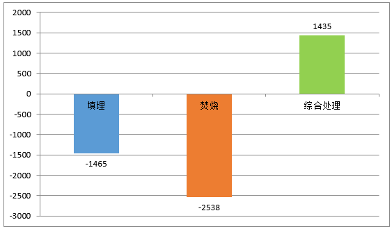 餐廚垃圾不同處置方法經(jīng)濟(jì)效益(萬元)